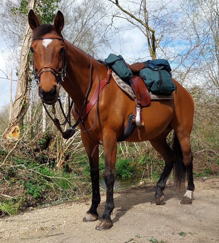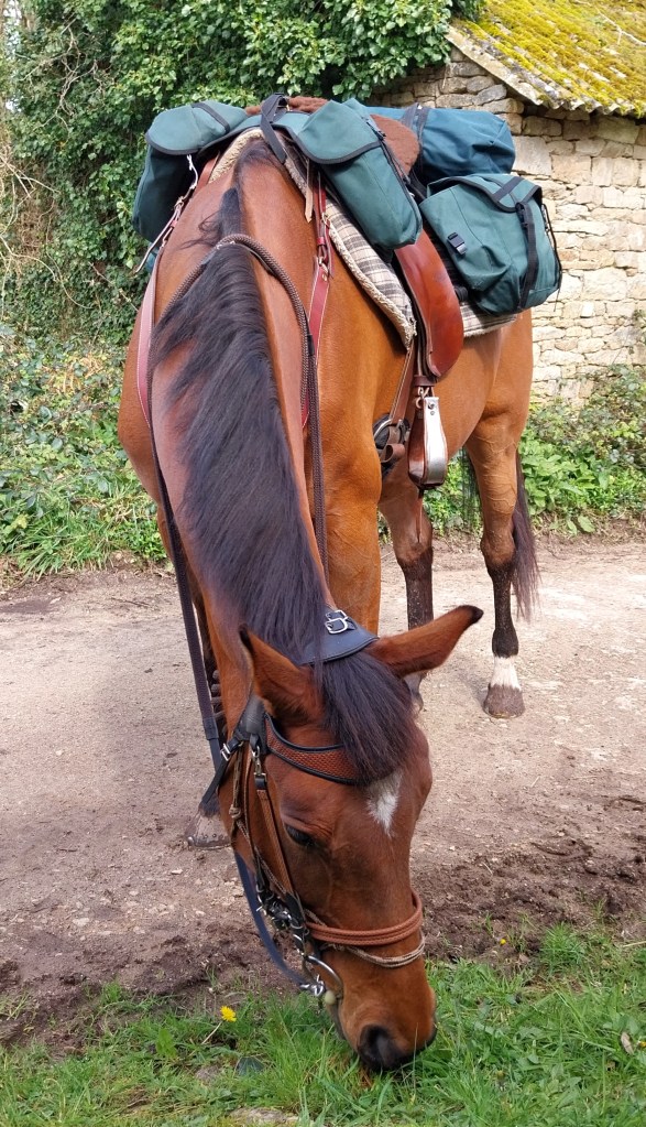 Côté matos, c’est un combo entre ma check-list de voyage à vélo et celle de voyage à pied : basiquement, des sacoches et des éléments ultra légers. En ce qui me concerne, j’ai peu d’ajustements à prévoir par rapport à mon matériel existant : différentes couches de vêtements, des chaussures de randonnée pour pouvoir alléger une partie des étapes en marchant aux côtés de la jument, un kit de bivouac, quelques provisions de nourriture et le nécessaire habituel en termes de pharmacie, d’hygiène et de sécurité.
