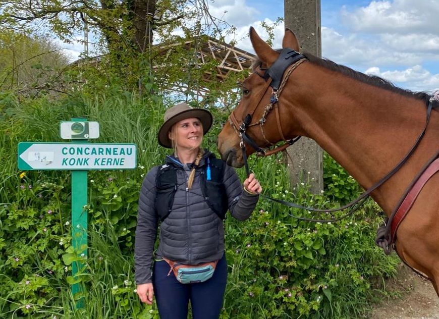 Concarneau. Jour J. Point de départ Finistérien de notre trip. J’arrive aux écuries et vais chercher la jument dans son pré, qui n’a aucune idée de ce qui l’attend pour ces 30 jours a venir… Oh joie, la météo est bien meilleure que celle attendue, et nous avons même le droit à quelques rayons de soleil pour nous accompagner sur cette première lancée !
