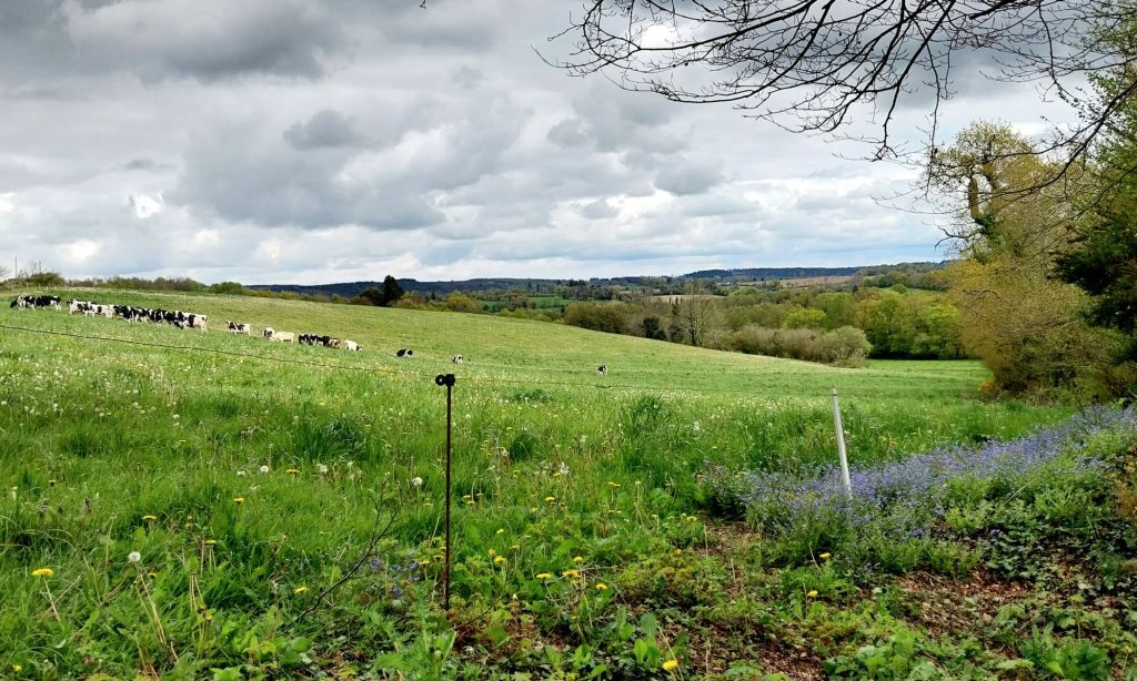 Passé Rosporden, on bifurque sur de nouveaux chemins, mélange de sentiers et de petites routes. Les vaches sont à l’herbe et nous suivent gaiement en crispant Quanan, toujours impressionnée de longer leurs prés quand elles sont à proximité.