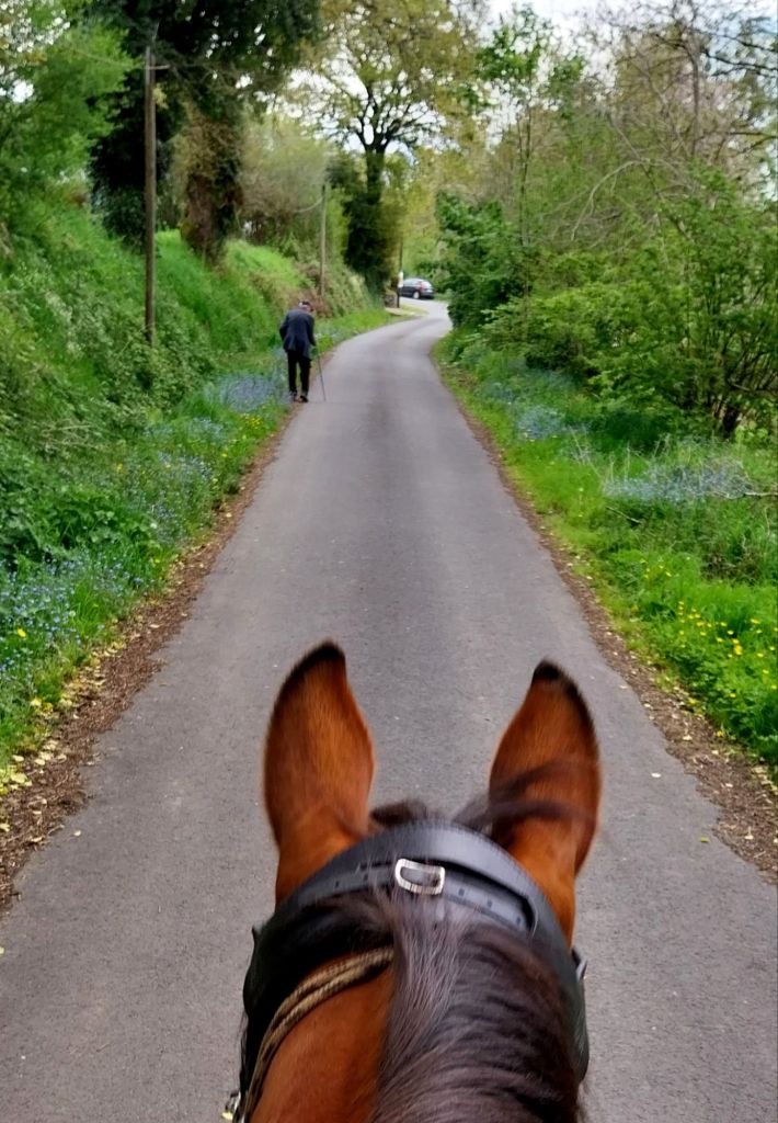 Après une petite heure d’échauffement et de souffle un peu lourd pour la jument, qui n’a pas eu tout son barda sur le dos depuis quinze jours, elle prend son rythme et enquille les kilomètres d’un pas volontaire, le nez au vent.