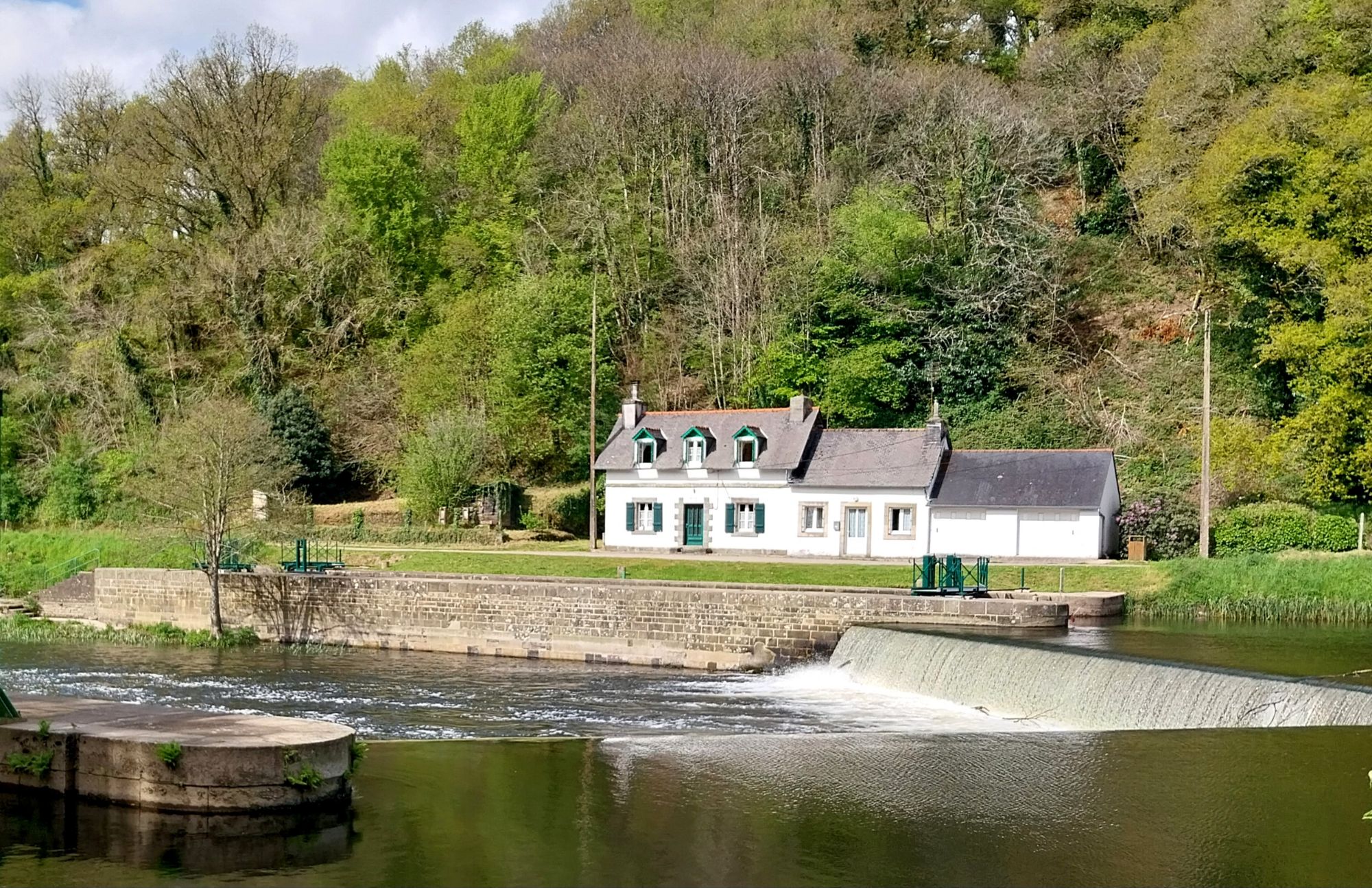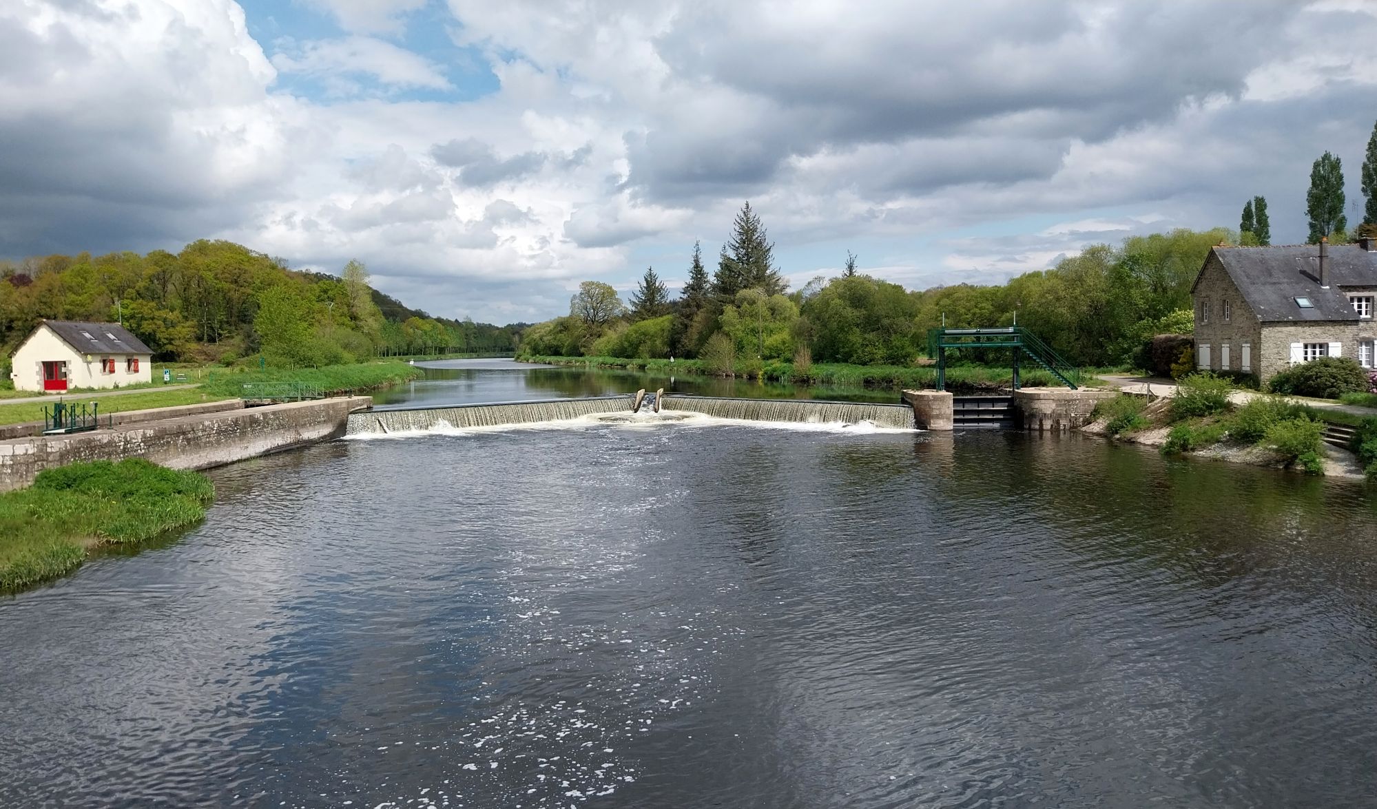 Arrivée au bord du canal de Nantes à Brest qui serpente le long de l’Aulne, et premier passage d’écluse réalisé avec aplomb par la jument, qui traverse le petit pont de pierre sans sourciller.