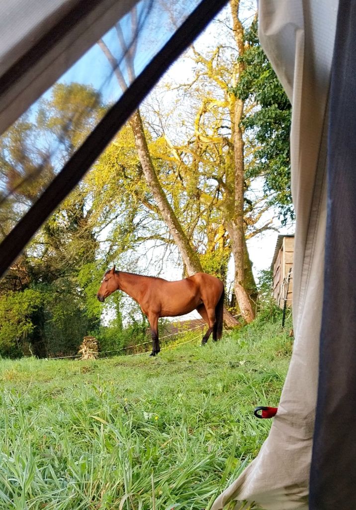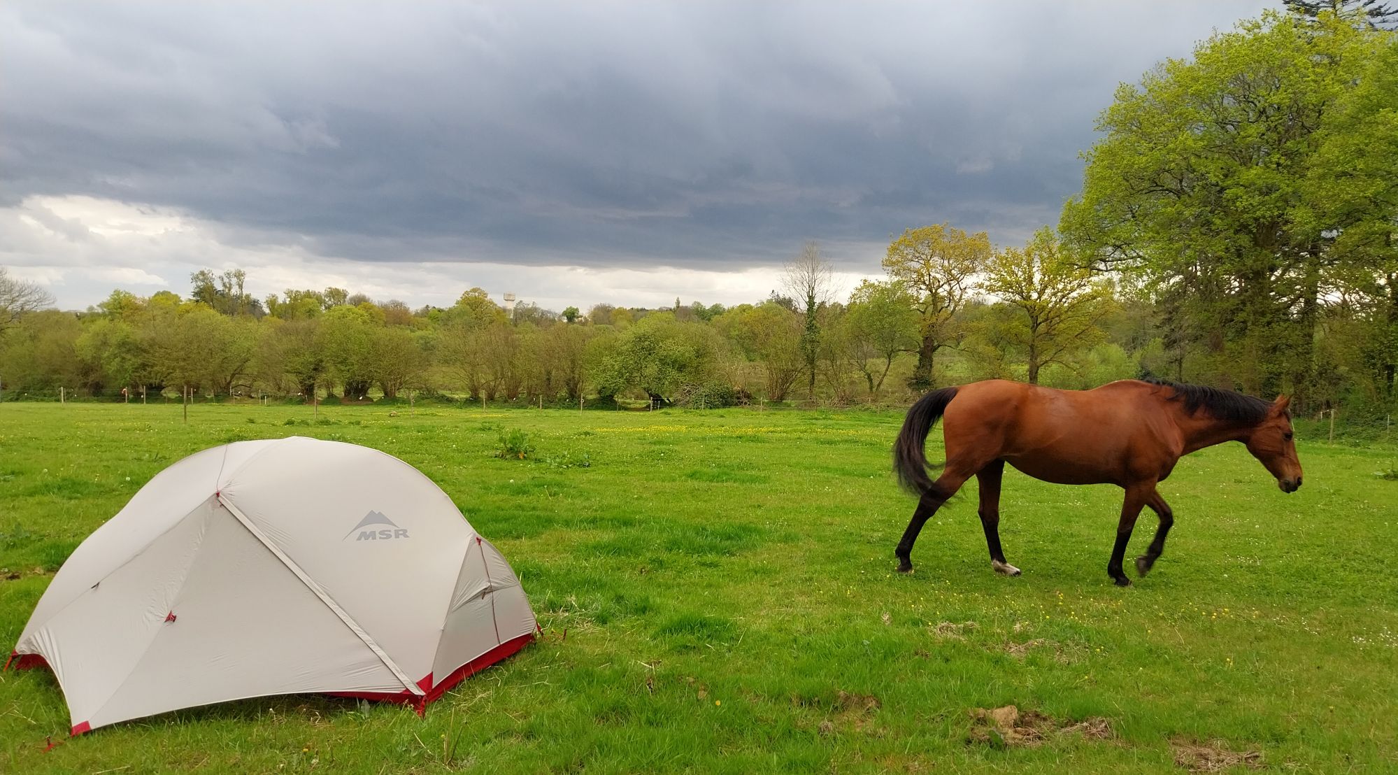 Ma tente est installée dans son pré, je préfère pour ces premiers jours garder un œil sur elle en dormant à proximité, même si l’humidité et les quelques degrés du matin piquent un peu…