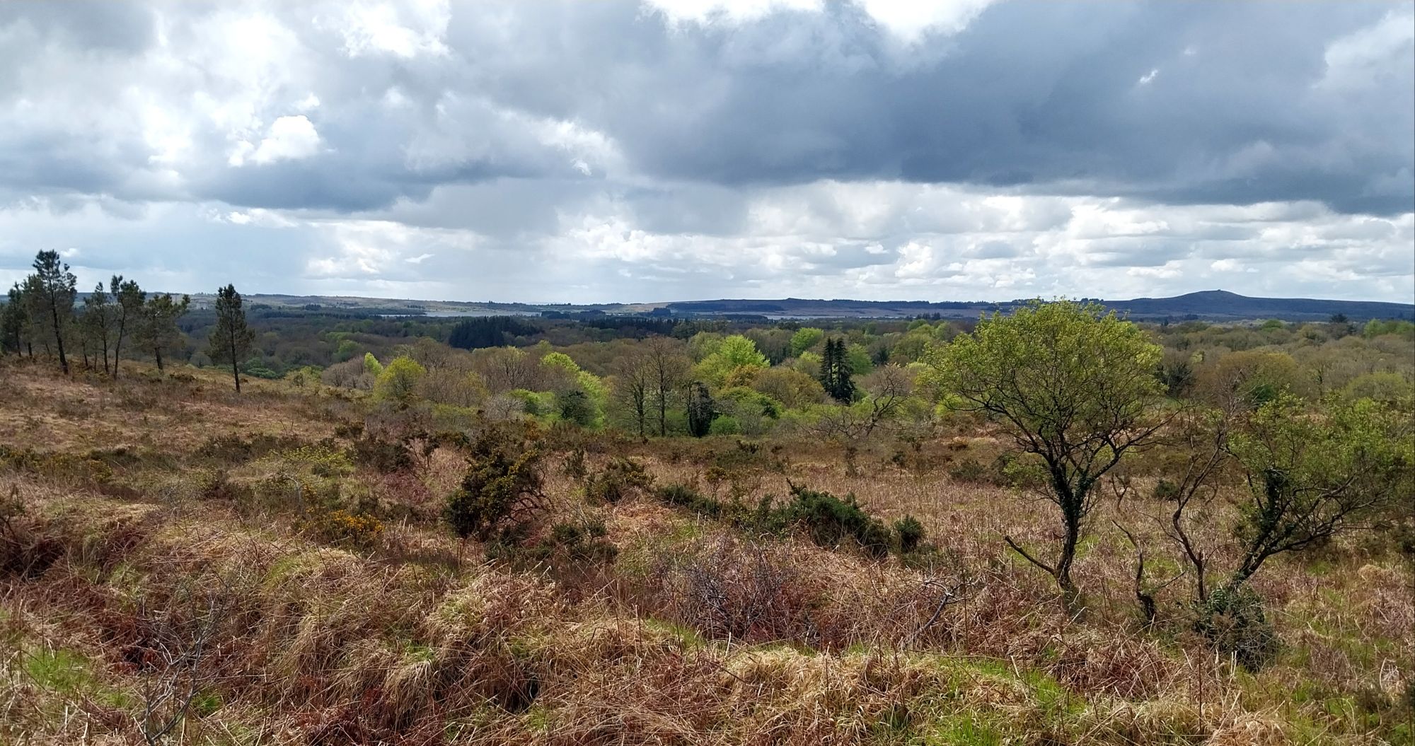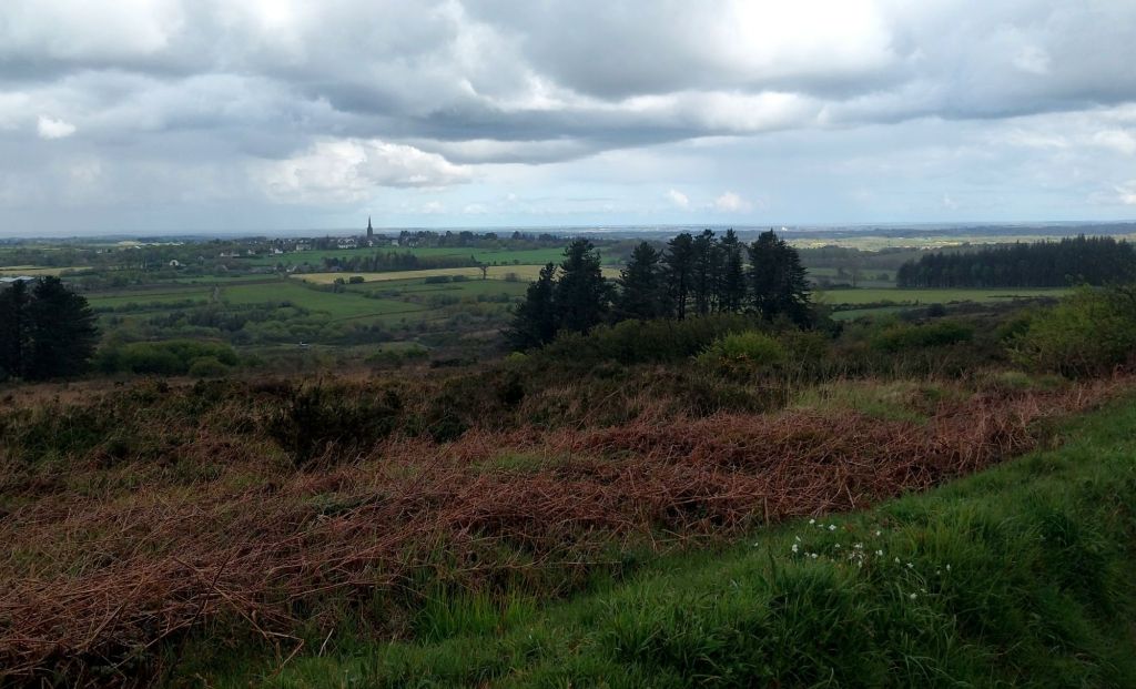 Malgré les ravages encore visibles de la tempête Ciaran, les chemins sont bien dégagés et l’itinéraire est superbe, laissant entrevoir au loin à l’approche de Saint Rivoal la célèbre chapelle de Brasparts, perchée sur sa petite montagne.