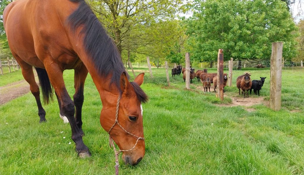 Mais c’est sans compter la « légère » distorsion d’informations données par la mairie deux jours plus tôt, qui me précisait bien au téléphone un « pré sécurisé avec point d’eau » pour l’accueil des cavaliers randonneurs. Sur place, je découvre que la pâture indiquée par de petits panneaux est située à 5 min à pieds du gîte, dans un champ isolé en bout de sentier, et surtout absolument pas clôturée !