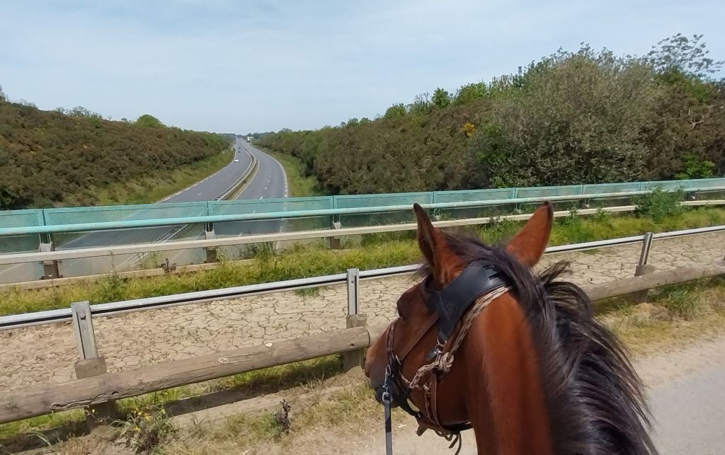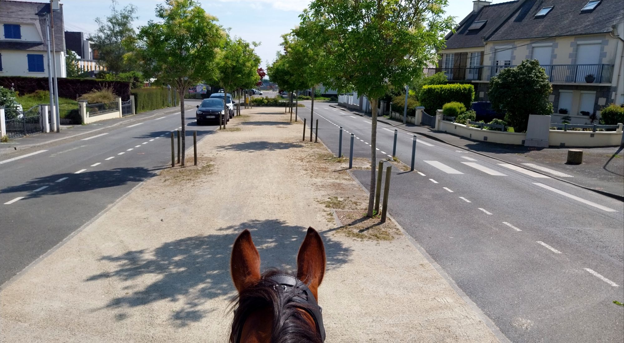 La jument enchaîne les traversées de ponts, de lotissements, de centre-villes et de places d’églises avec un sang froid infaillible et une bonne humeur contagieuse. Les gens sourient et nous saluent affectueusement, contents de voir passer un équidé impromptu en plein milieu de leur quotidien.