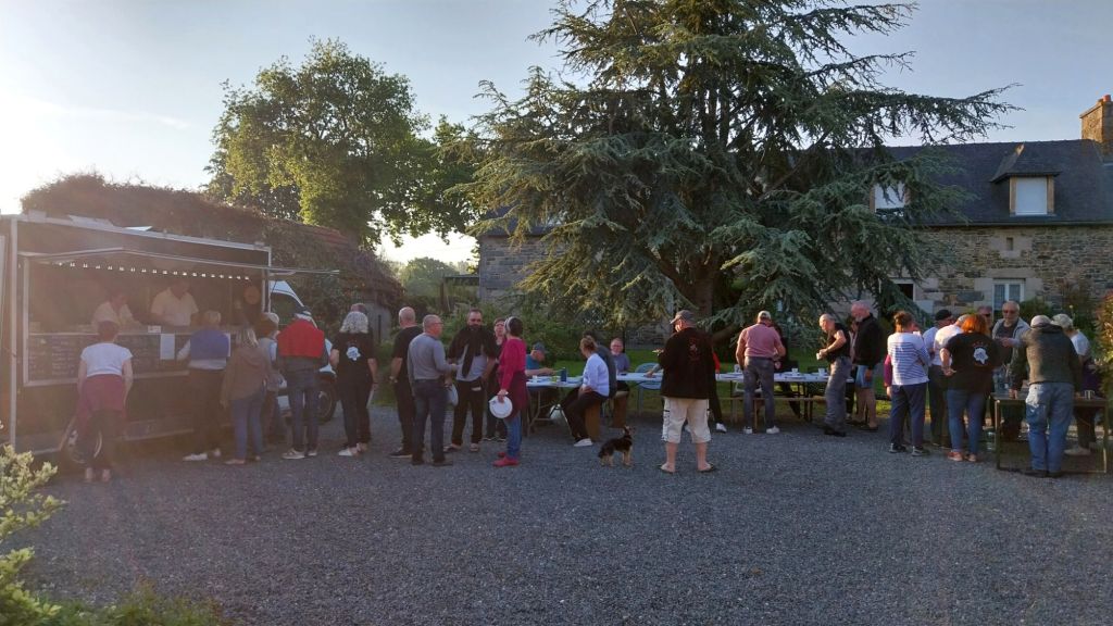 Pour ce samedi soir, c’est ambiance riders ! Je me retrouve au milieu d’un groupe de 36 motards venus passer quelques jours dans les alentours. Un food truck de galettes s’installe dans la cour, et je suis chaleureusement conviée à partager leur soirée. Ils sont adorables, mais sans même démarrer leurs engins, ils font grimper en flèche mon quota de décibels, trop habituée aux ambiances feutrées de mes précédentes journées…