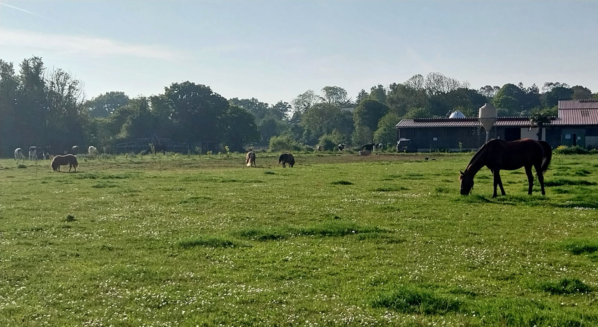 A l’approche de la côte au nord de Saint Brieuc, j’abandonne donc l’idée de camping sans espace dédié aux chevaux, et fais étape un peu plus au calme dans les terres chez Myriam, qui avait proposé de m’héberger via un groupe de cavaliers des Côtes d’Armor sur les réseaux sociaux.