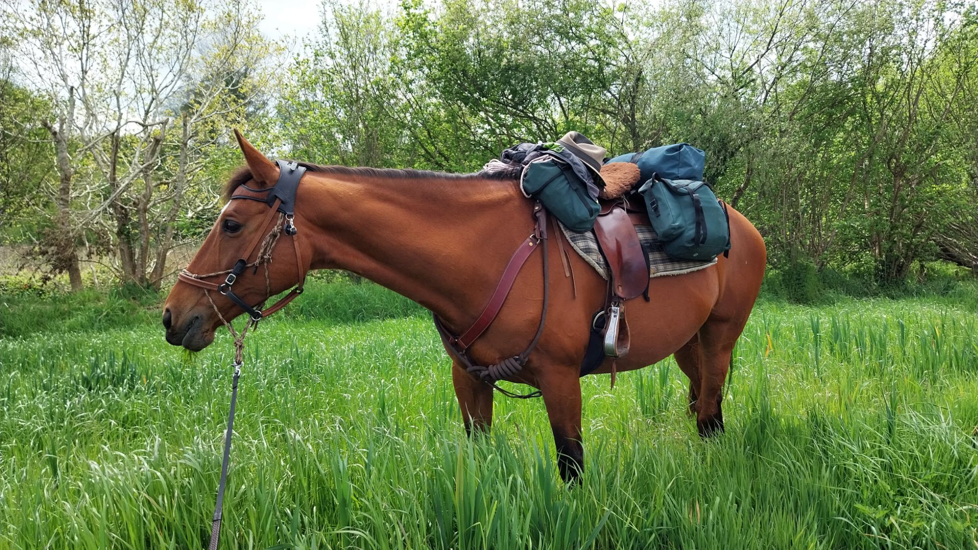 L’expérience de ma première semaine m’a amené à réajuster quelques étapes, principalement pour assurer la sécurité de la jument le soir en pré clôturé, mais aussi pour adapter nos distances d’un jour à l’autre, afin d’équilibrer nos efforts de marche cumulés.