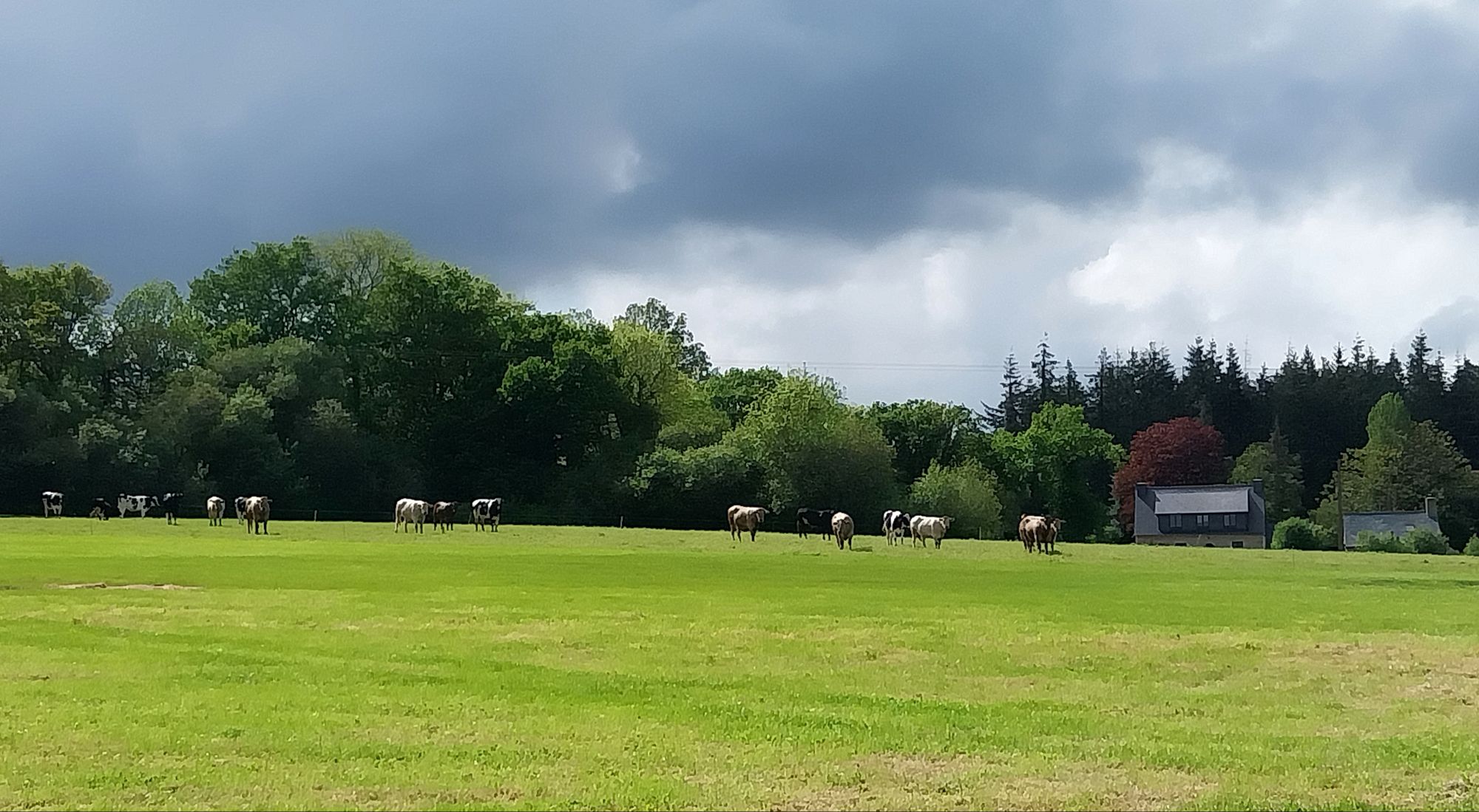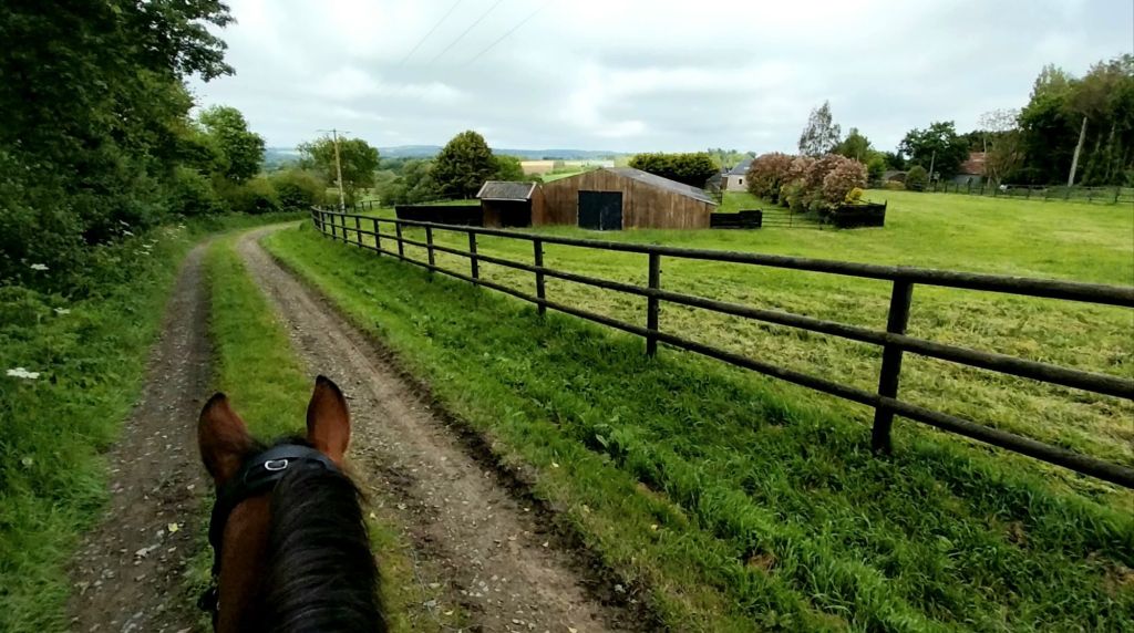 L’itinéraire est toujours aussi joli. Des vaches, souvent. Des chevaux, régulièrement. Une jument et son poulain qui trottinent et nous appellent depuis leur champ un peu plus loin, sans que Quanan ne daigne répondre…