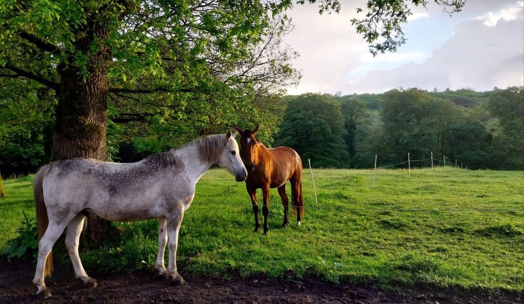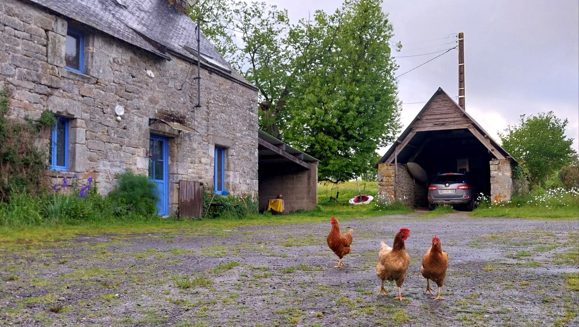 C’est donc à Séglien que nous passons la fin de journée et le lendemain, le temps de laisser passer les fortes pluies annoncées. Quanan fait connaissance avec ses deux adorables colocs gris, pendant que je suis chaleureusement accueillie et installée chez Marie.