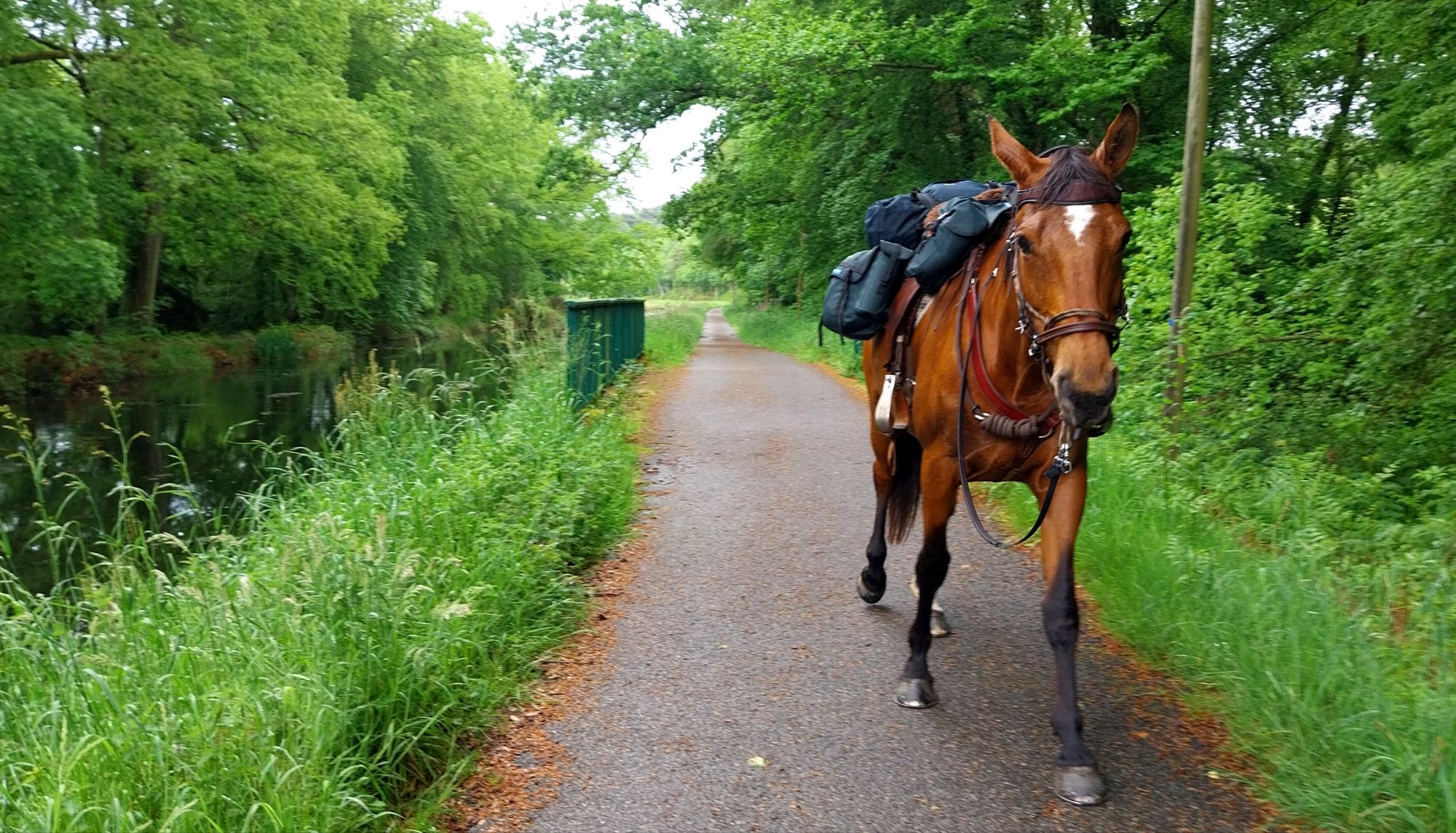 La journée démarre calmement. Pas de vent, pas de pluie. Peu d’activités alentours, si ce n’est quelques personnes croisées qui nous questionnent sur notre itinéraire, sans pouvoir m’étendre au-delà de ce que Quanan veut bien nous accorder comme temps, piaffant et grattant pour reprendre sa marche…