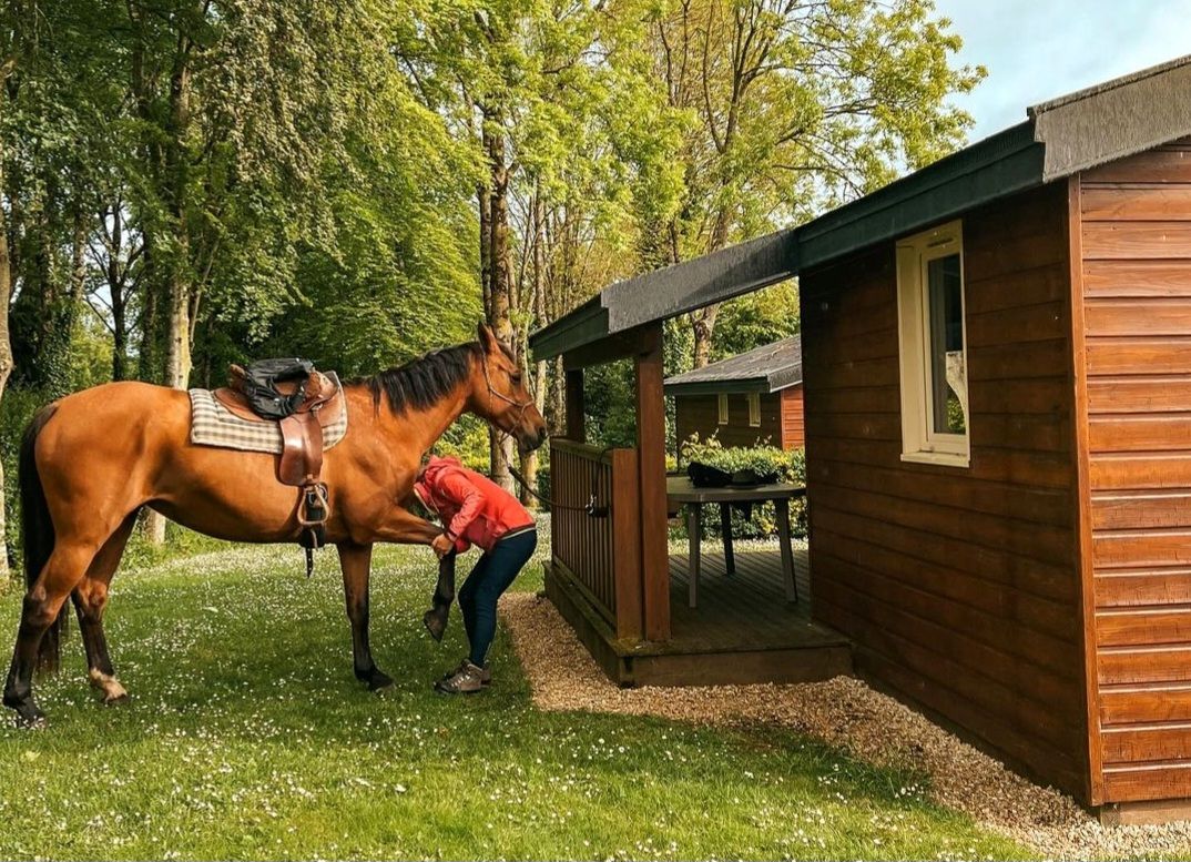Installées dans un chalet juste en face, cela nous permet d’assurer une présence rassurante pour la jument, tout en gardant un œil sur elle. Elle râle un peu avec quelques hennissements d’ennui pour finalement se poser tranquillement, plus calme que ce que j’avais imaginé étant donné ce nouveau lieu très atypique pour elle !