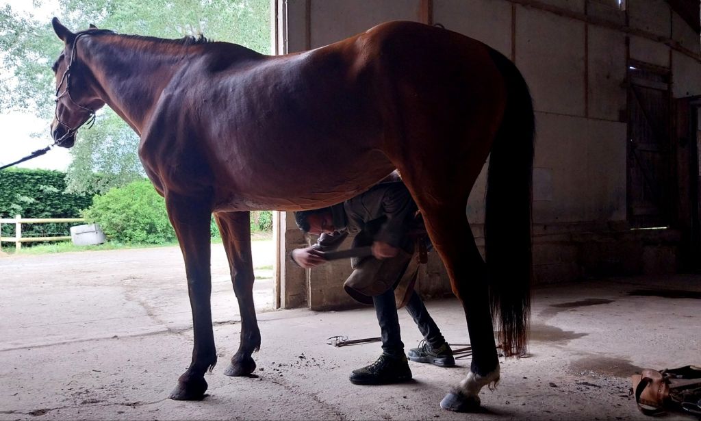 J’appréhende un peu de confier cette tâche à une nouvelle personne, habituée à mon maréchal concarnois très expérimenté qui nous avait peaufiné une super ferrure de départ, mais là je n’ai pas d’autre choix. Heureusement, la jument est facile et a de bons pieds, un changement de technique ponctuel ne devrait donc pas trop la perturber.