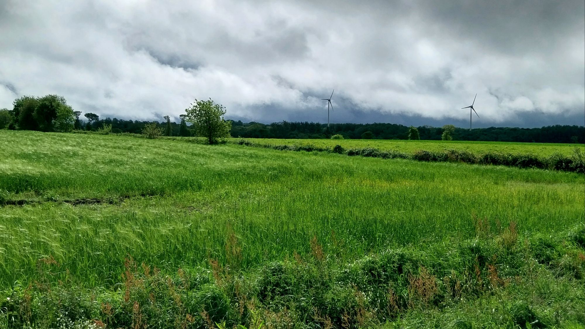 Quelques exploitations agricoles odorantes pour faire ronfler Quanan de perplexité à leur traversée, un passage d’éoliennes fendant sourdement l’air de leurs immenses pales, encore et toujours des vaches curieuses, un gros ragondin en train de grignoter dans le creux d’un fossé au bord d’un cours d’eau…