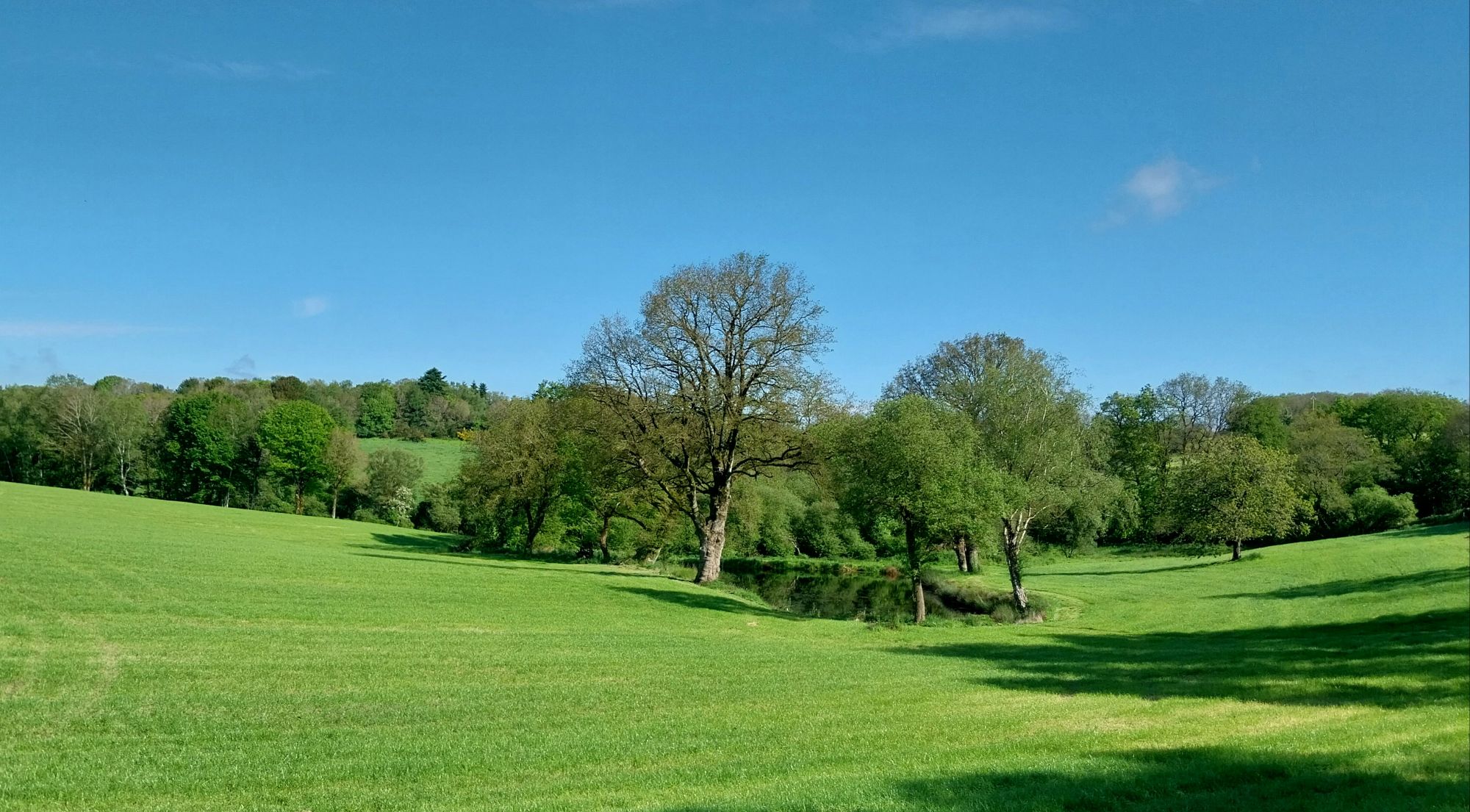 Les grandes étendues vertes de forêts et de champs nous offrent des dénivelés plus doux que la veille. Une bruine passagère peu après notre départ me laisse glacée une partie de la matinée, avant que les températures ne se radoucissent à nouveau.