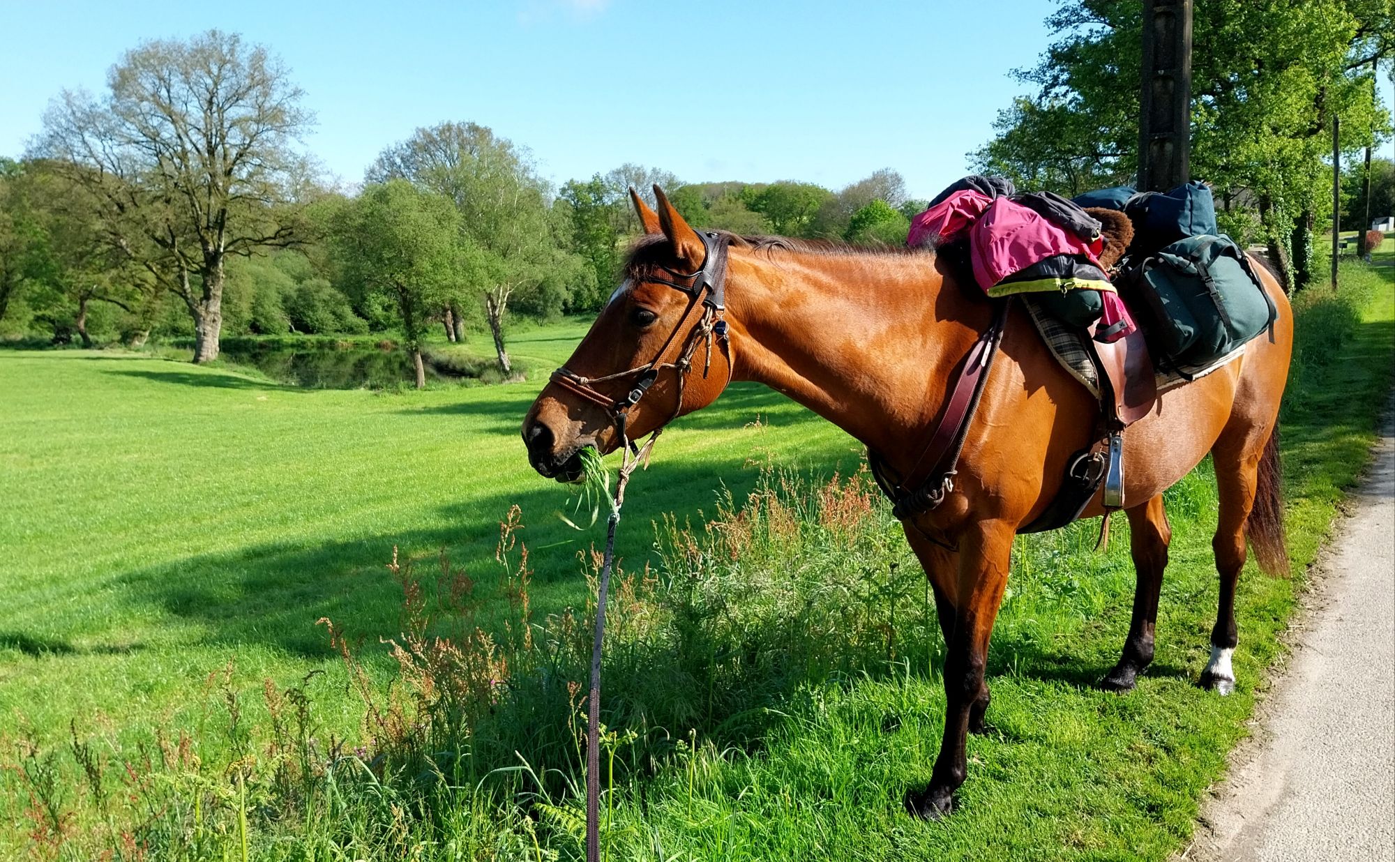 On a traversé des ponts et sauté des troncs. Pataugé dans des gués et usé nos semelles sur des routes bitumées. Galéré sur des sentiers bouchés, accidentés, inondés. Profité des paysages vallonnés et des contrastes colorés. Glissé sur des pierriers limés. Banni des peurs de la jument les vaches et les round-baller enrubannés. Pris quelques douches intempestives sous les caprices de la météo. Traversé de belles forêts. Les landes des Mont d’Arrée. Le grenier de la Bretagne et ses étendues de champs cultivés. Vu de jolis hameaux et de vieilles baraques abandonnées. Des exploitations agricoles douteuses. Des tas d’animaux des villes, des champs, et des bois. Frissonné sous les quelques degrés du matin. Chillé sous les rayons du soleil pour se réchauffer. Partagé instinctivement nos doutes et nos fatigues. Profité de haltes réconfortantes. Sympathisé avec nombre de cavaliers et leurs équidés. Appris de tous ces parcours variés. Dormi sous les étoiles de trois départements bretons.