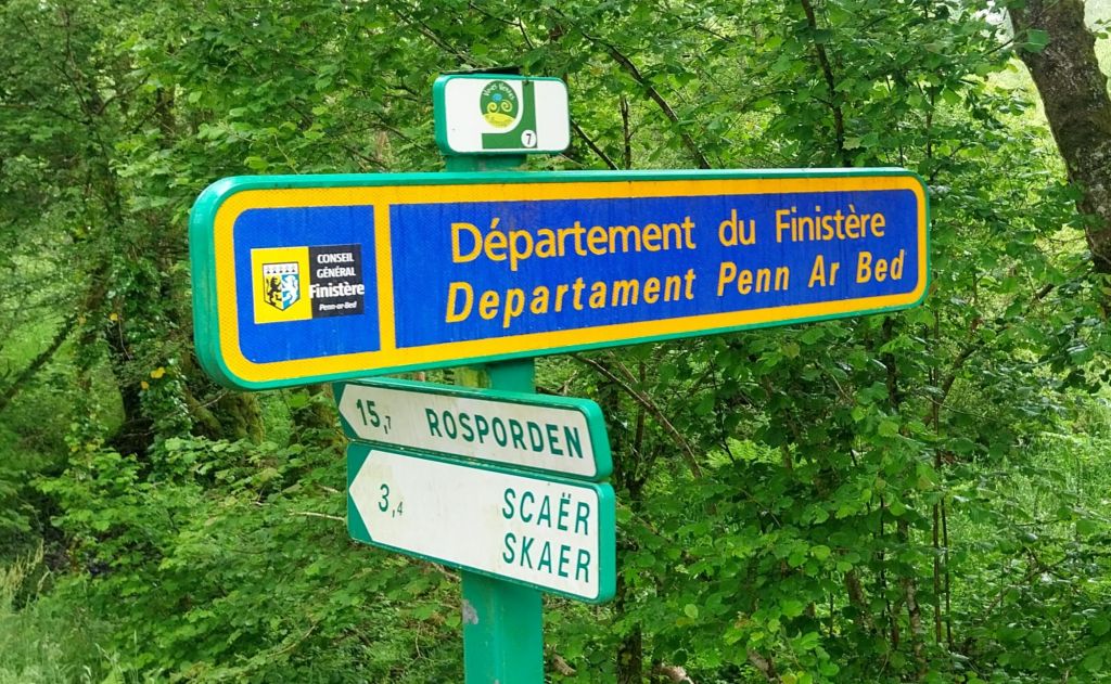 Quelques kilomètres plus loin, un panneau nous indique notre passage dans le département du Finistère… ça sent bon le chemin de la maison !